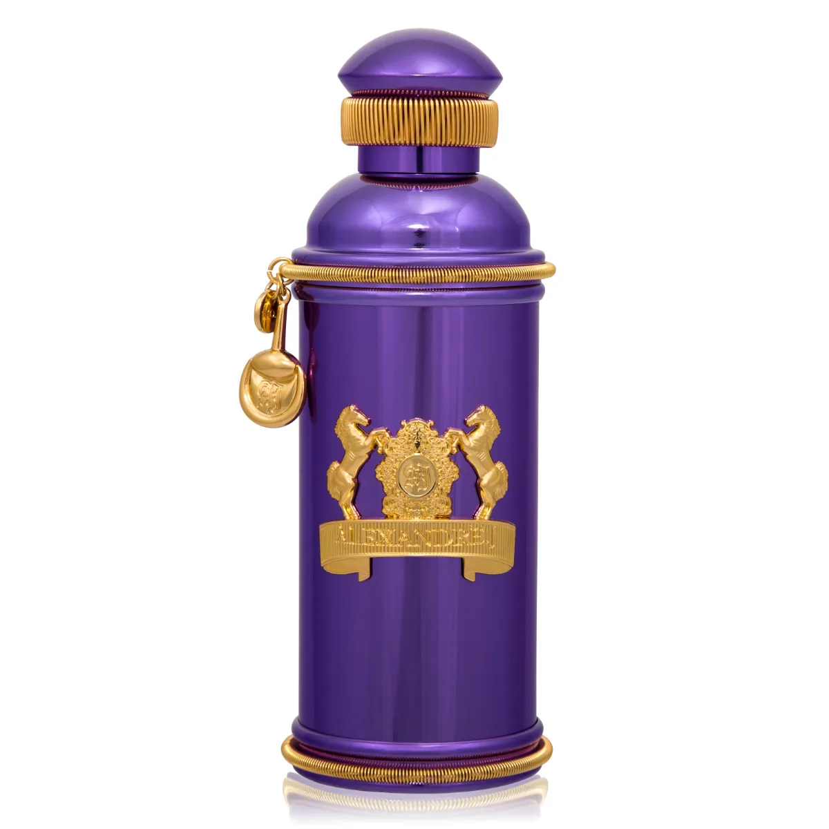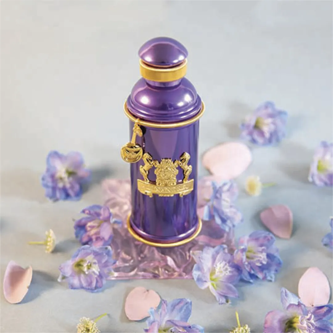 Parfumovaná voda Purple Iris Alexandre.J ponúka mladú a sviežu verziu kosatca. Táto nádherná elegantná vôňa je klenotom princeznej modernej doby. Prvé tóny poodhaľujú čerstvosť exotického ovocia a chrumkavého jablka. Následne sa rozvinie vôňa farebného kosatca. Tóny ruže a jazmínu potom prechádzajú zvodným spôsobom v tóny kašmírového dreva, vanilky a pižma.