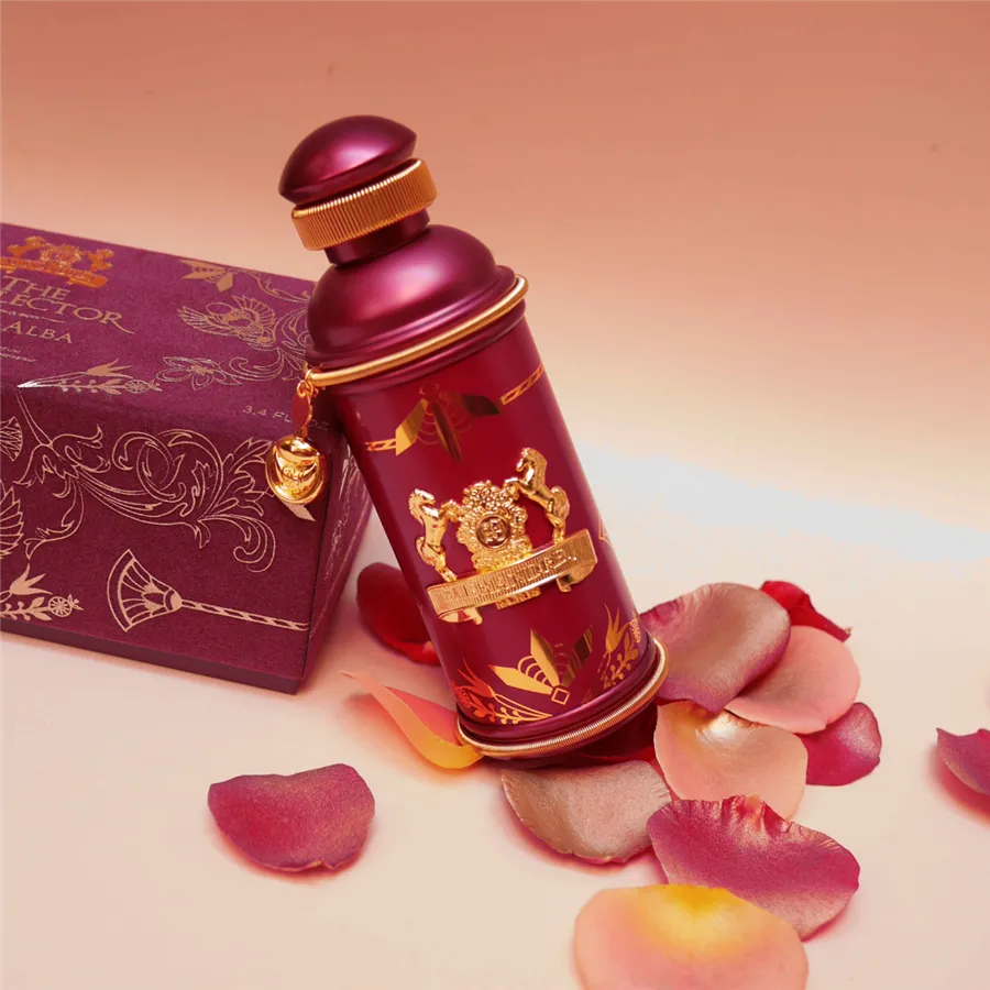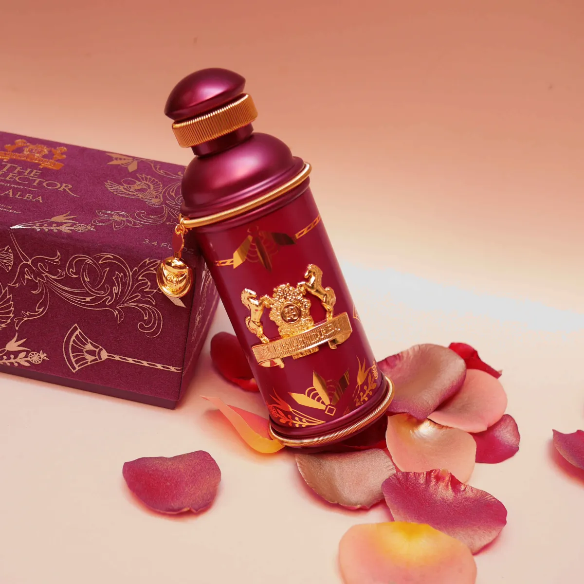 Parfumovaná voda Rose Alba Alexandre.J zachytáva ducha tejto zberateľskej kolekcie kombináciou východných a západných vplyvov. Alexandre.J je vedený túžbou ponoriť sa do vzniku a histórie ruže. Mýtická kvetina je hlavnou zložkou tohto parfumu. Pre Kleopatru bola práve ruža symbolickou kvetinou grécko-rímskej civilizácie. Použila ju dokonca k zvádzaniu cisára Marcusa Antonia. Flakón je zahalený do červenej farby v kombinácii so zlatými prvkami. Táto skvostná kombinácia farieb má pripomínať bohaté závesy v paláci, ktoré zdobia egyptský nositelia slnka - chrobáky.