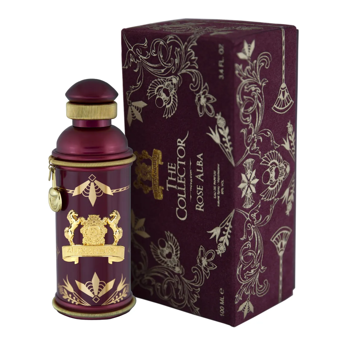 Parfumovaná voda Rose Alba Alexandre.J zachytáva ducha tejto zberateľskej kolekcie kombináciou východných a západných vplyvov. Alexandre.J je vedený túžbou ponoriť sa do vzniku a histórie ruže. Mýtická kvetina je hlavnou zložkou tohto parfumu. Pre Kleopatru bola práve ruža symbolickou kvetinou grécko-rímskej civilizácie. Použila ju dokonca k zvádzaniu cisára Marcusa Antonia. Flakón je zahalený do červenej farby v kombinácii so zlatými prvkami. Táto skvostná kombinácia farieb má pripomínať bohaté závesy v paláci, ktoré zdobia egyptský nositelia slnka - chrobáky.