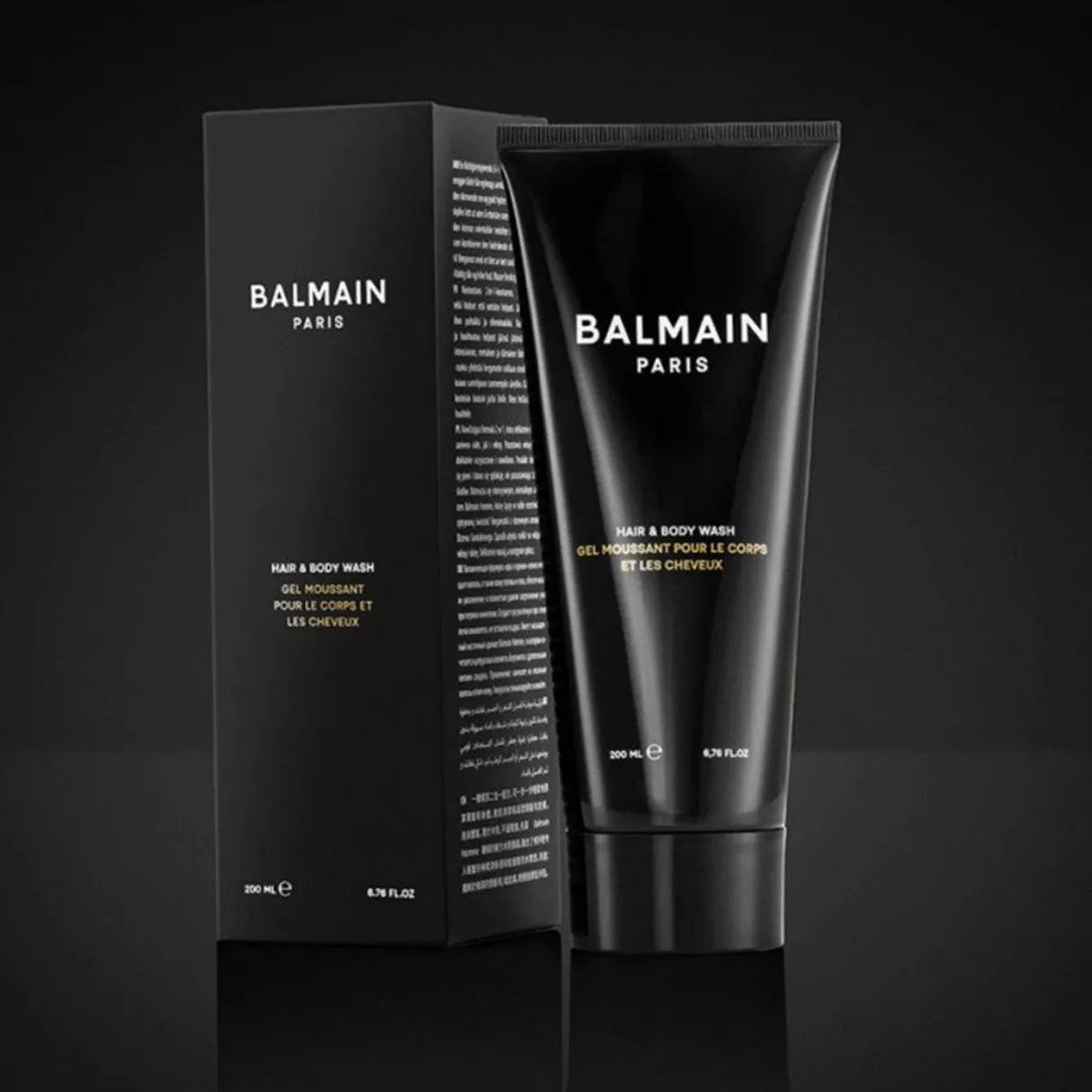 Luxusný rituál čistoty v jednom kroku. Starostlivosť 2 v 1 šetrne umýva telo aj vlasy a zahalí vás do orientálno-drevitej vône Balmain.