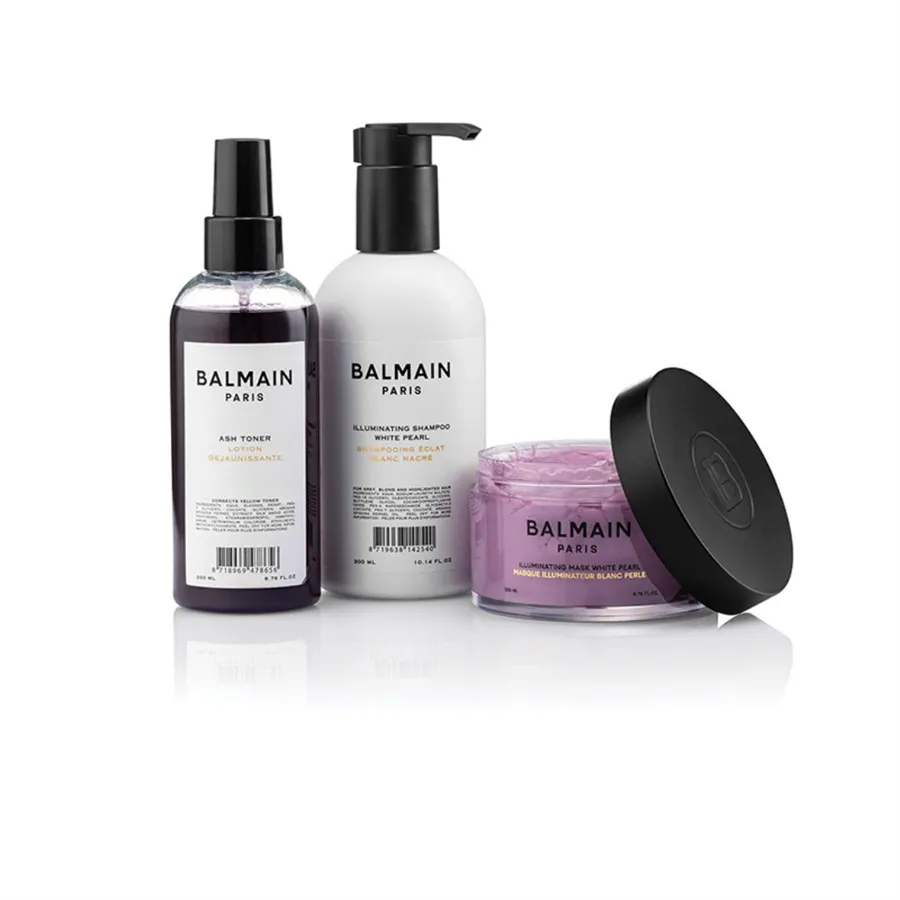 Rad Illuminating od Balmain Hair, obohatený o čisté fialové pigmenty, pomáha odrážať neželané teplé odtiene a rozjasňovať farbu vlasov.