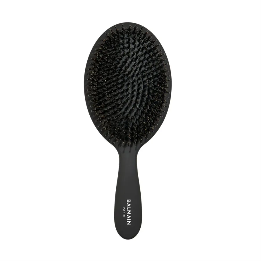 Profesionální kartáč Balmain ze směsi 100 % kančích a nylonových štětin jemně rozčesává vlasy, rozvádí přirozený maz do délek a zajišťuje tak oslnivý lesk bez krepatění. Šetrně masíruje pokožku hlavy, podporuje krevní oběh a zdravý růst vlasů.