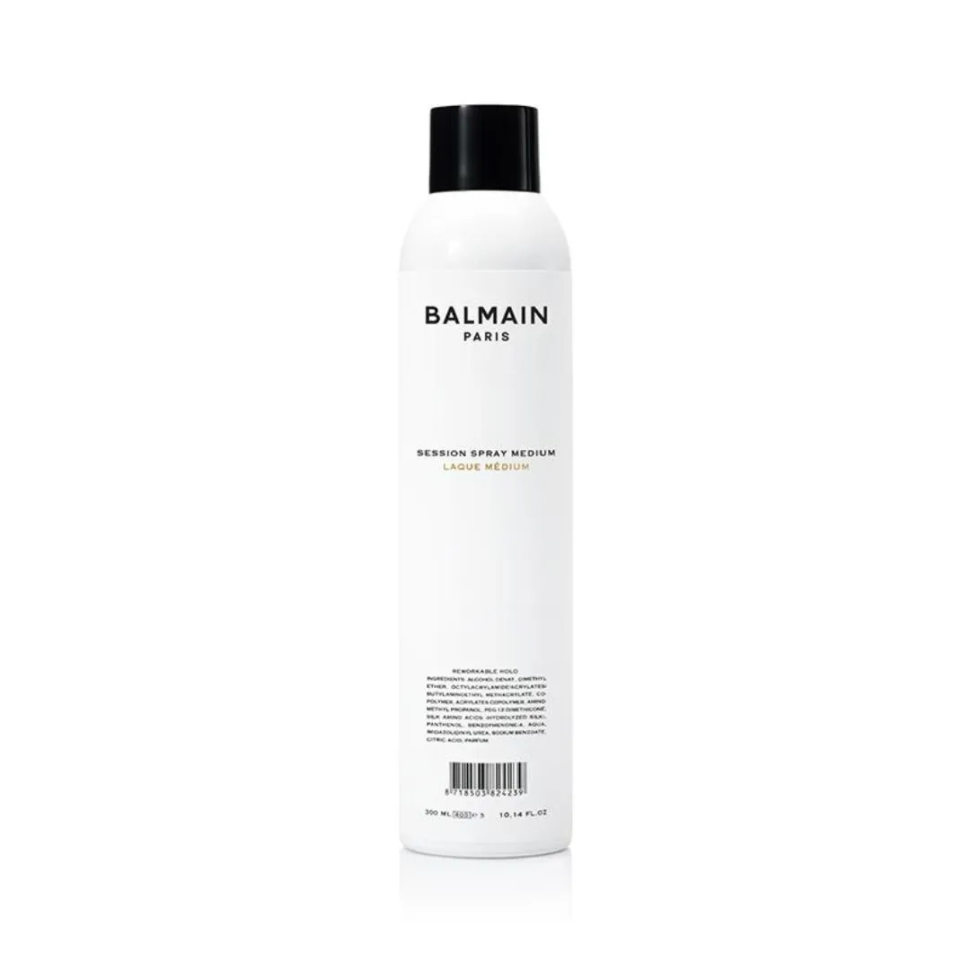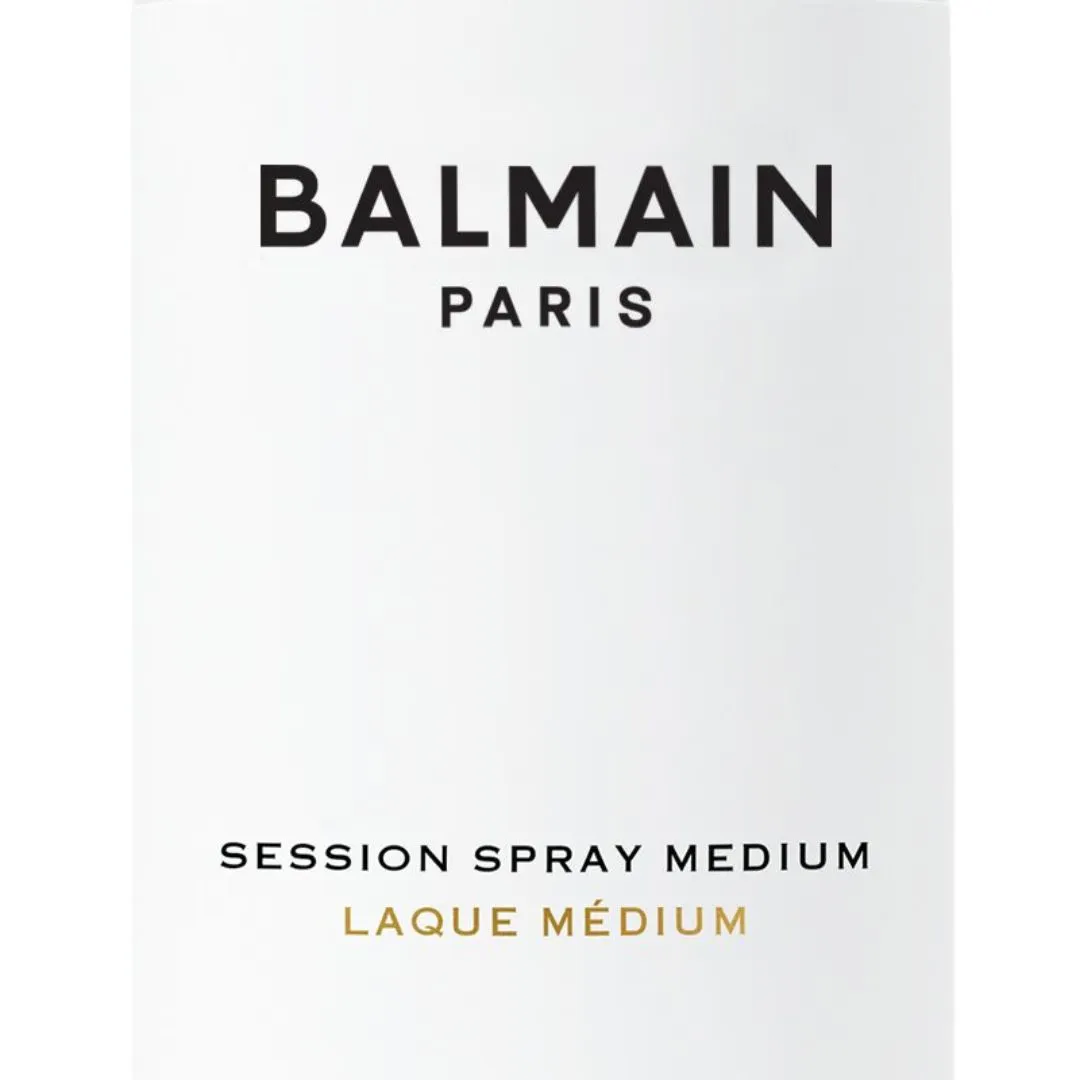 Balmain Session Spray Medium je ľahký vlasový sprej, ktorý dodáva vlasom poddajnú textúru. Zafixuje účes bez ztuhnutia a zachová prirodzený vzhľad. Zároveň pomáha chrániť vlasy pred vysušujúcimi účinkami slnečného žiarenia.