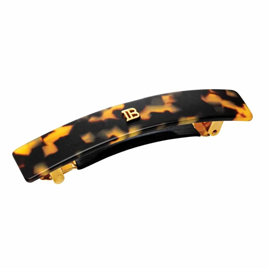 Vysoko kvalitná, ručne vyrobená vlasová spona z odolného acetátu celulózy, zdobená typickým znakom "B", vyrobeným zo 14 karátového plátkového zlata. Veľmi pevný, avšak pružný materiál je hypoalergénny a šetrný k vlasom, aj pokožke hlavy.