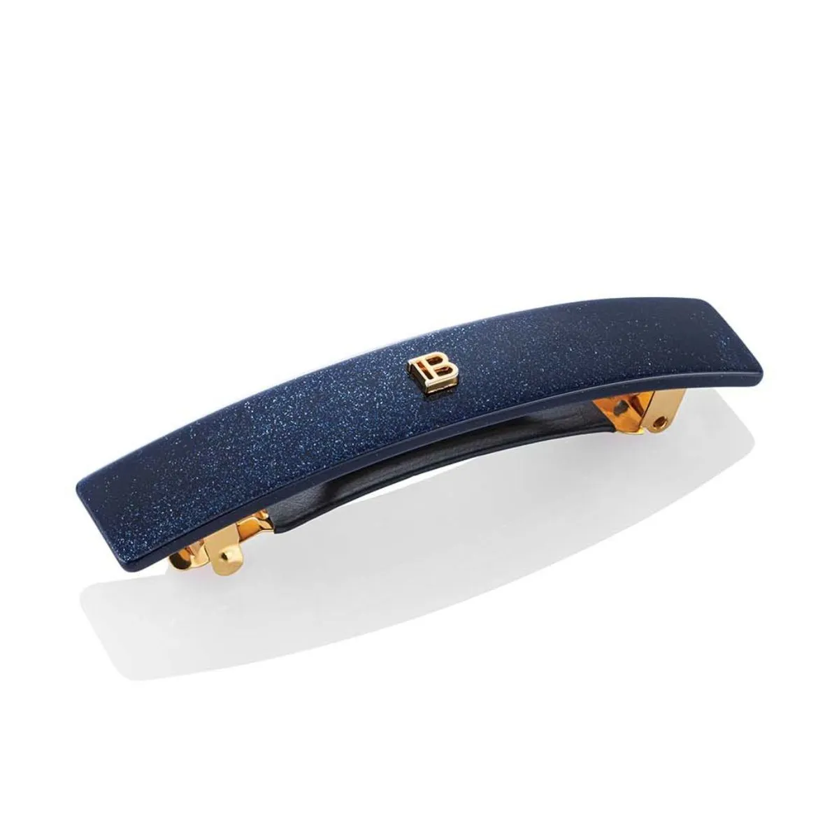 Vysoko kvalitná, ručne vyrobená vlasová spona z odolného acetátu celulózy, zdobená typickým znakom "B", vyrobeným zo 14 karátového plátkového zlata. Veľmi pevný, avšak pružný materiál je hypoalergénny a šetrný k vlasom, aj pokožke hlavy.