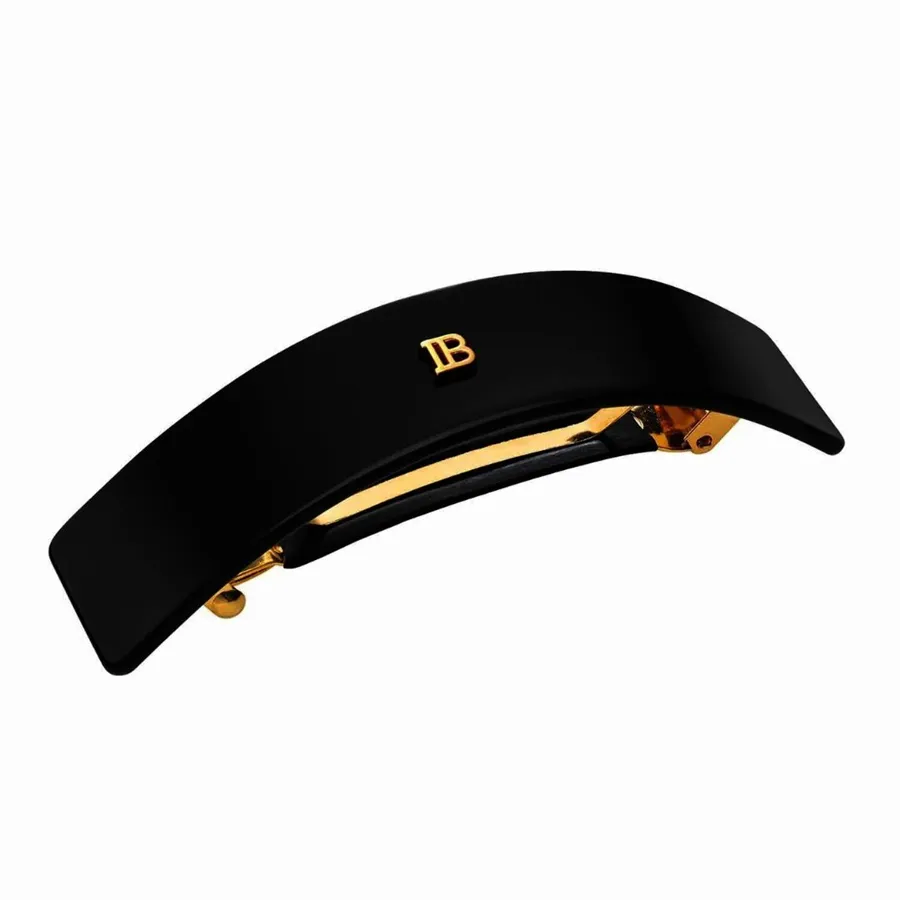 Vysoko kvalitná, ručne vyrobená vlasová spona z odolného acetátu celulózy, zdobená typickým znakom "B" vyrobeným zo 14-karátového plátkového zlata. Veľmi pevný, avšak pružný materiál je hypoalergénny a šetrný k vlasom aj pokožke hlavy.