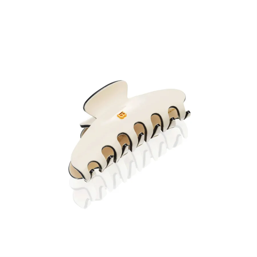 Vysoko kvalitný, ručne vyrobený vlasový štipec z odolného acetátu celulózy, zdobený typickým znakom "B" vytvoreným zo 14-karátového plátkového zlata. Veľmi pevný, avšak pružný materiál je hypoalergénny a šetrný voči vlasom aj pokožke hlavy.