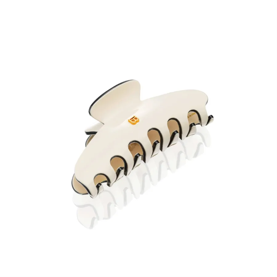 Vysoko kvalitný, ručne vyrobený vlasový štipec z odolného acetátu celulózy, zdobený typickým znakom "B", vytvoreným zo 14 karátového plátkového zlata. Veľmi pevný, avšak pružný materiál je hypoalergénny a šetrný k vlasom, aj pokožke hlavy.