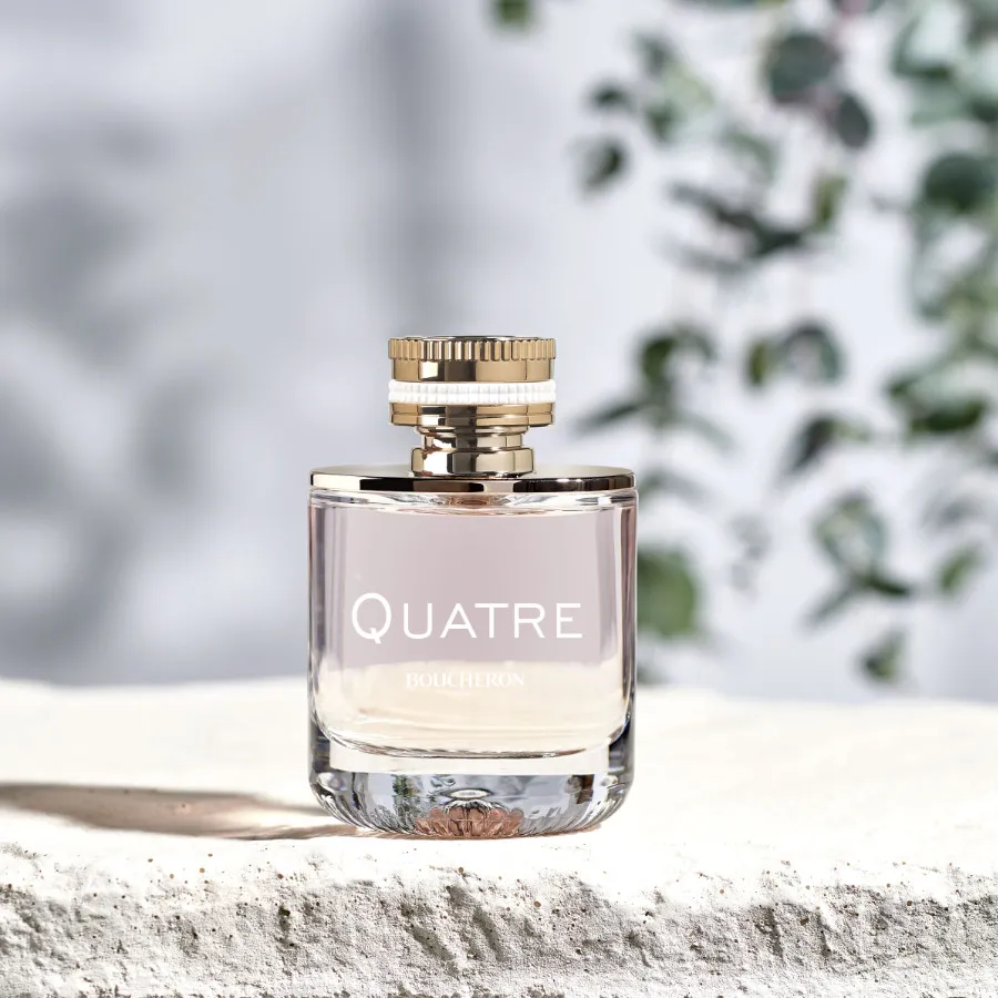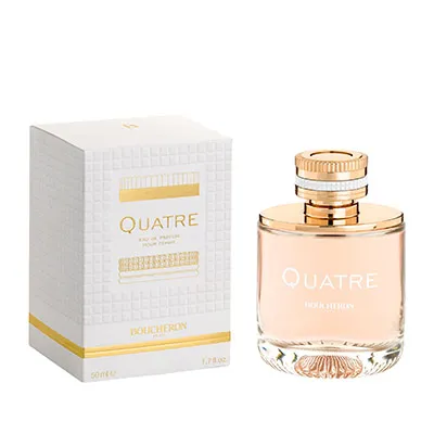 Dámska ovocnokvetinová vôňa s charakterom, Boucheron Quatre, je vytvorená pre odvážnu, odhodlanú a vyzývavú ženu. Je živou kombináciou odvážnej modernosti a nadčasovej elegancie. Je poctou ikonickému prsteňu Quatre tohto slávneho šperkárskeho domu. Jeho design je založený na štyroch rôzne zdobených krúžkoch zo štyroch rôznych materiálov. Dokonalá kombinácia pre každého, každý moment a každý štýl.