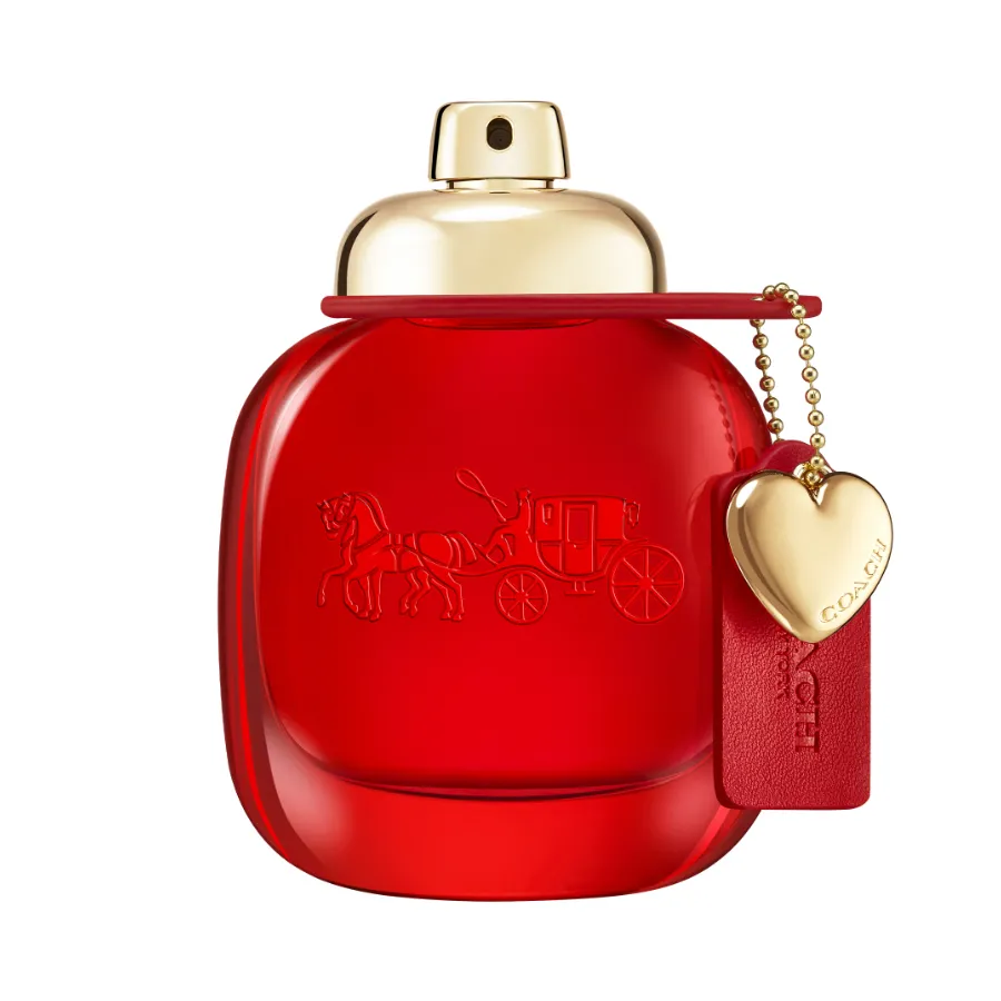 Flakón má sýtočervený odtieň, ktorý symbolizuje farbu vášne a farbu kožených výrobkov značky Coach. Je zakončená ikonickým uzáverom s otočným zámkom a klasickým zlatým kovaním vrátane prívesku v tvare srdca. Škatuľka s ikonickým logom Coach s kočom ťahaným koňmi je zdobená mäkkou štruktúrovanou kožou v sýtom červenom odtieni - čo je poklona dedičstvu domu v oblasti výroby kože.