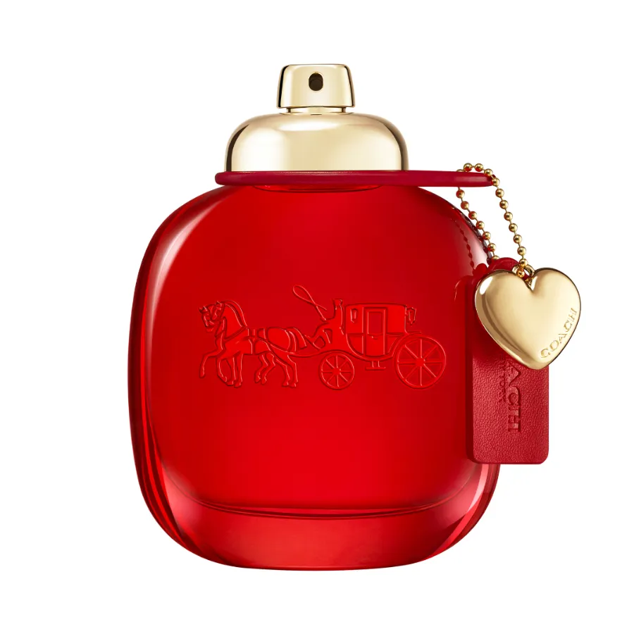 Flakón má sýtočervený odtieň, ktorý symbolizuje farbu vášne a farbu kožených výrobkov značky Coach. Je zakončená ikonickým uzáverom s otočným zámkom a klasickým zlatým kovaním vrátane prívesku v tvare srdca. Škatuľka s ikonickým logom Coach s kočom ťahaným koňmi je zdobená mäkkou štruktúrovanou kožou v sýtom červenom odtieni - čo je poklona dedičstvu domu v oblasti výroby kože.