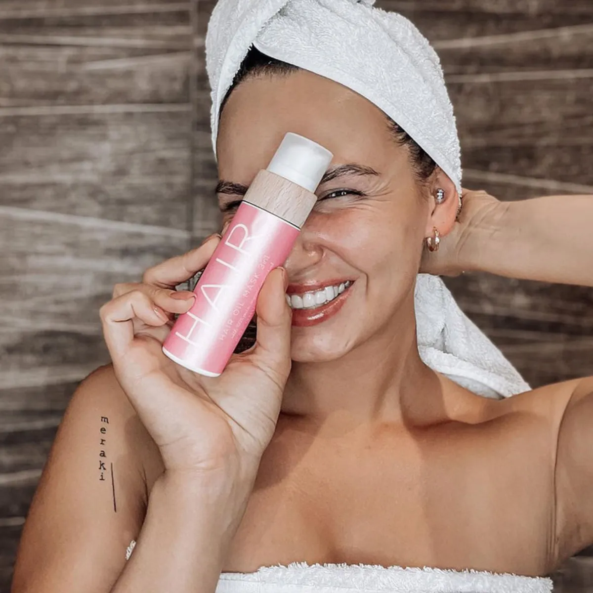 • Kokosový olej - hĺbkovo vyživuje a hydratuje, posilňuje štruktúru vlasov, zanecháva ich hladké a pružné