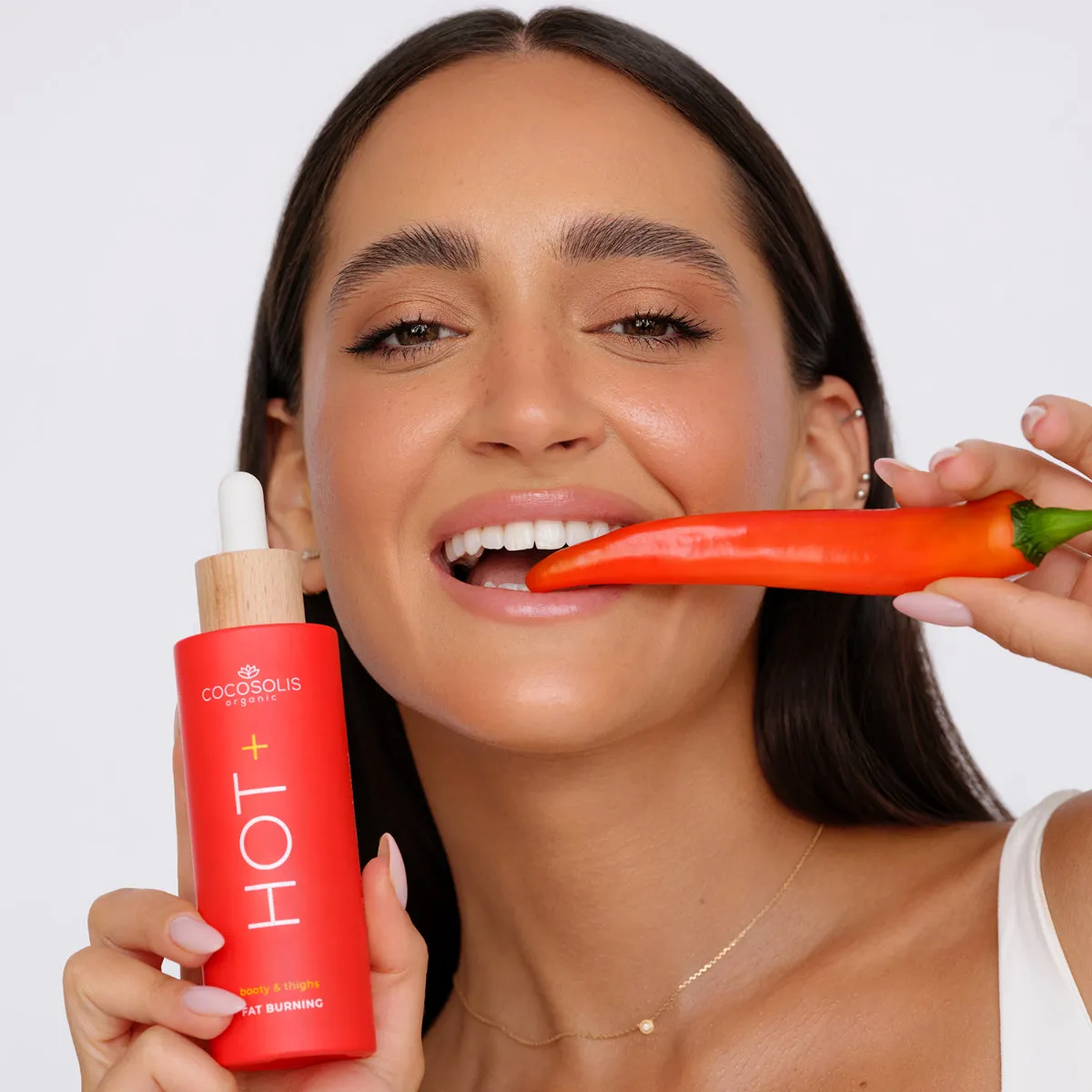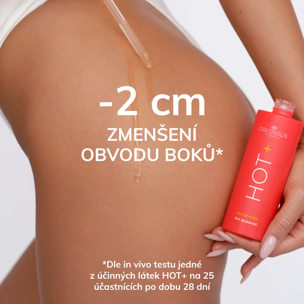 Zoštíhľujúce sérum Cocosolis Hot+ má inovatívne zloženie s prírodnými aktívnymi látkami, ktoré pôsobia synergicky. Podporuje spaľovanie tukov, zabraňuje ich opätovnému ukladaniu a redukuje prejavy celulitídy. Je obohatené o hydratačné zložky a rastlinné extrakty. Stimuluje tvorbu kolagénu, vyhladzuje a tvaruje. Súčasne podporuje odvodnenie, dodáva pokožke antioxidanty a hydratuje ju. Zanecháva pokožku hladkú a žiarivú.