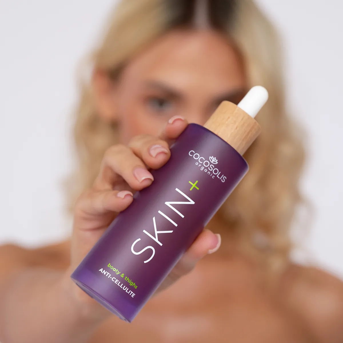 Vyhladzujúce sérum na celulitídu Cocosolis Skin+ má inovatívne zloženie s 10 prírodnými aktívnymi látkami, ktoré pôsobia synergicky. Obsahuje vysokú koncentráciu aktívnych látok s klinicky preukázanou účinnosťou v boji proti prejavom celulitídy. Je obohatené o hydratačné zložky a rastlinné extrakty. Vďaka hĺbkovému pôsobeniu viditeľne redukuje prejavy celulitídy, stimuluje tvorbu kolagénu, vyhladzuje a tvaruje. Súčasne podporuje spaľovanie tukov a odvodnenie, dodáva pokožke antioxidanty a hydratuje ju. Zanecháva pokožku hladkú a žiarivú.