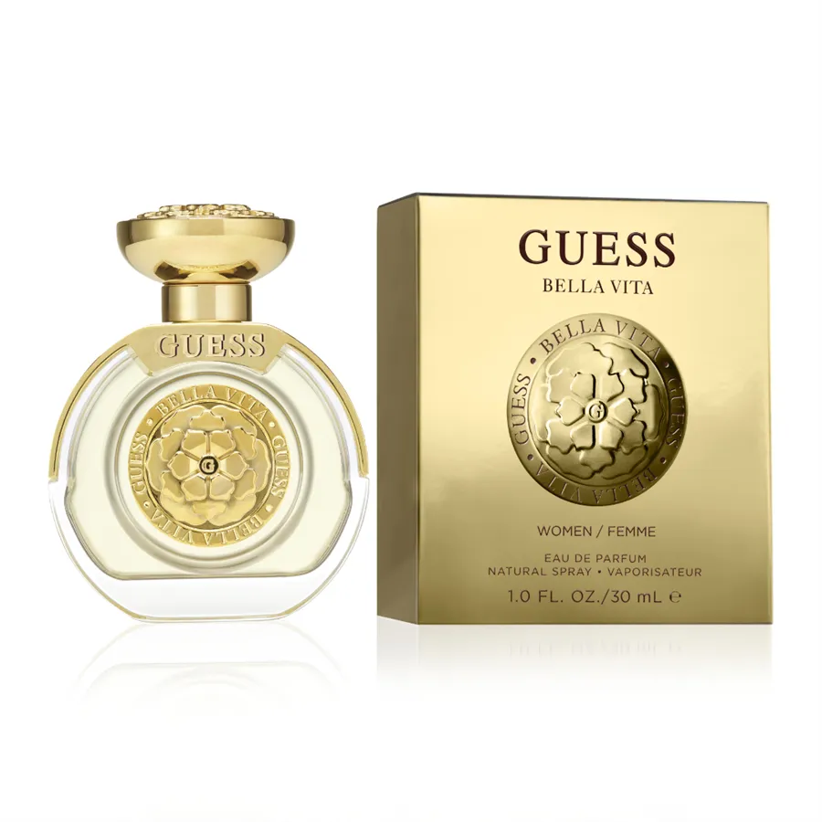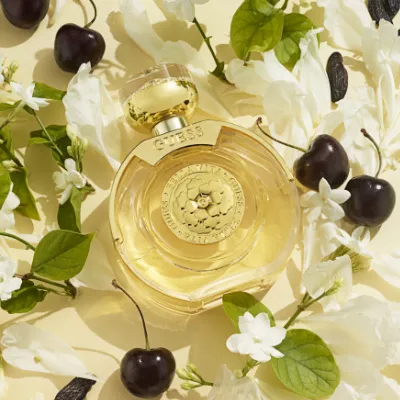 Táto ovocná a kvetinová vôňa sa otvára hravými a živými tónmi talianskeho bergamotu a čiernej ríbezle pod vedením sladkých čiernych čerešní. Zmyselnosť ženy Guess podtrhuje zamatovo biele kvetinové srdce, tvorené tónmi jazmínu, vanilkovej orchidey a zvýraznené tuberózou. Hrejivá zmes jantáru, fazule tonka, praliniek a ľahkého pižma vytvára sladký a nezabudnuteľný záver vône.
