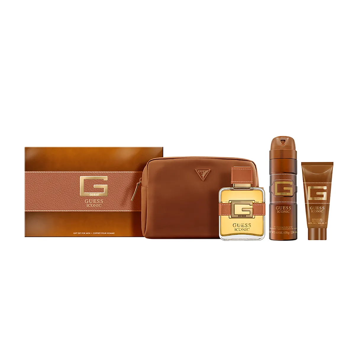 Flakón v sebe nesie rukopis značky Guess. Hnedá kožená textúra so zlatými detailmi a precíznym šitím vytvára dojem nadčasového luxusu. Dizajn je mužný, elegantný a prepracovaný do posledného detailu.