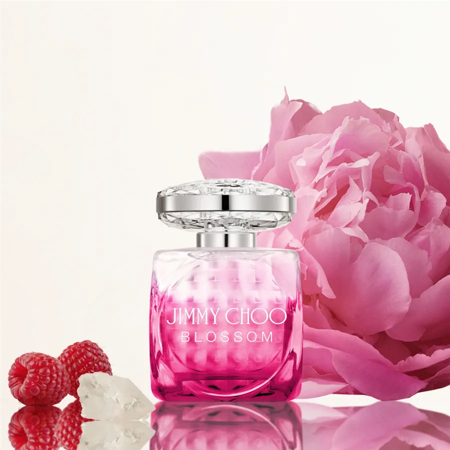Iskrivé a žiarivé topánky Jimmy Choo BLOSSOM pripomínajú očakávaný večierok s najlepšími priateľmi, ktorí sa chystajú do veľkomesta. Vôňa je určená ženám, ktorých koketný šarm má v srdci rytmus každého mestského dievčaťa; radostný a zvodný.