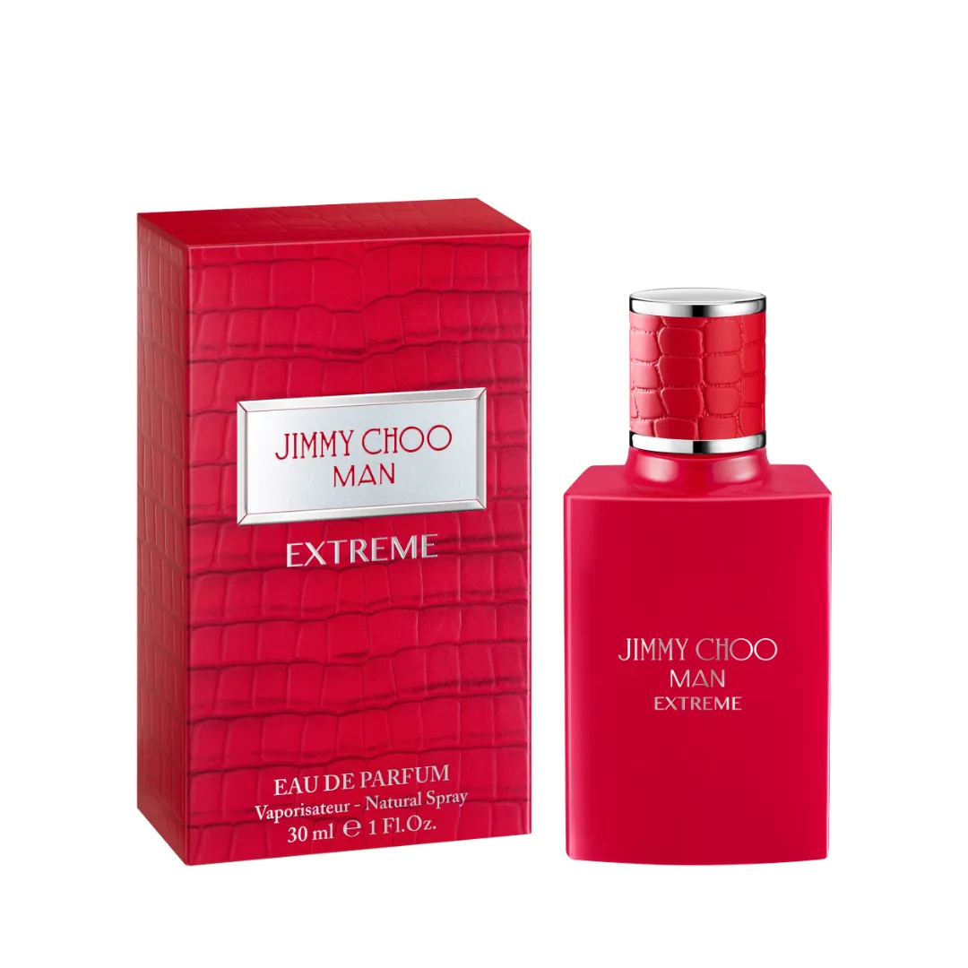 Táto edícia je aktualizáciou ikonického pôvodného flakónu v tvare štvorca so strieborným uzáverom, nová verzia je odliata v žiarivom šarlatovom laku. Jimmy Choo Man Extreme je vytlačený v striebornom písme, zmyselné viečko z červenej kože ukrýva odvážnu vôňu obsiahnutú vo vnútri.