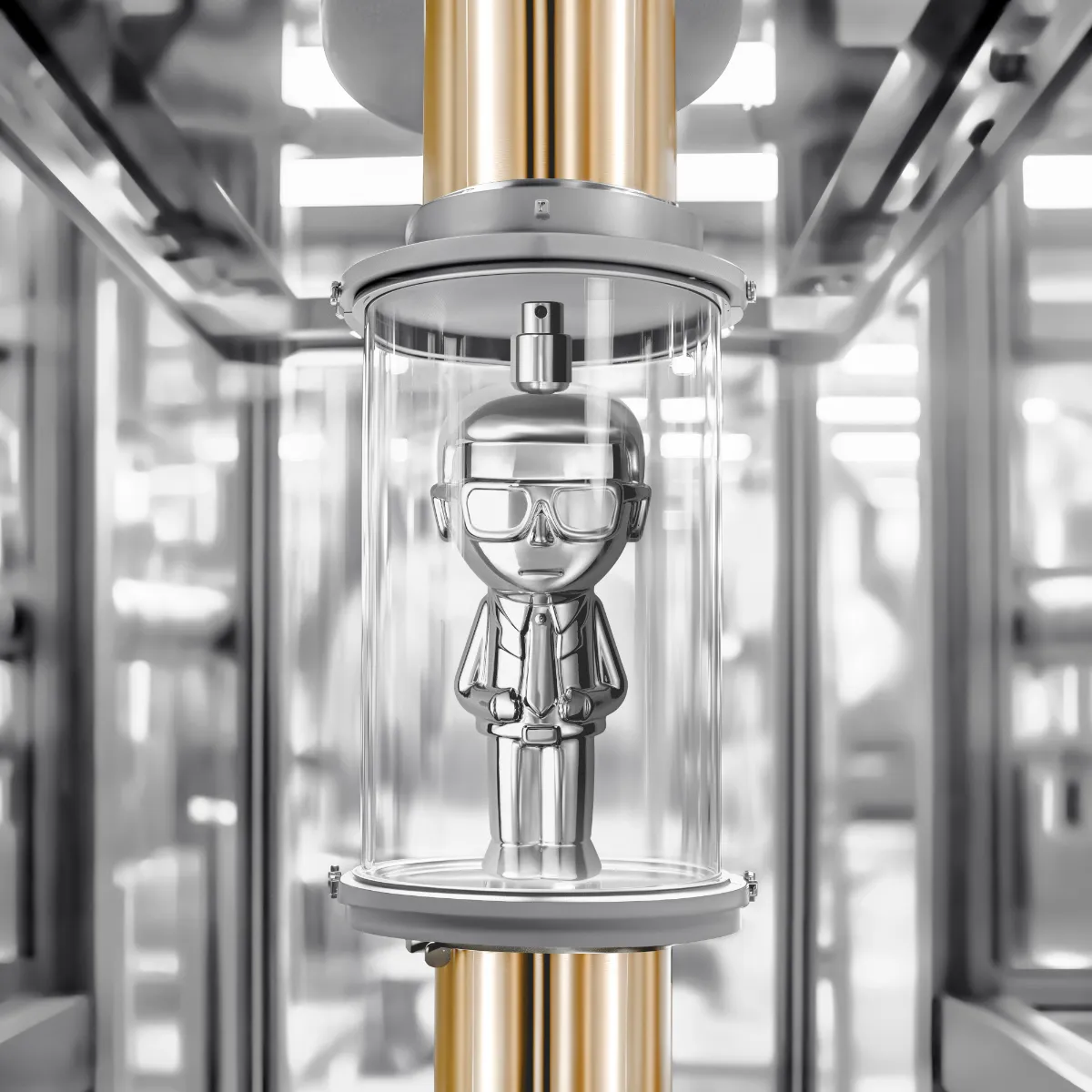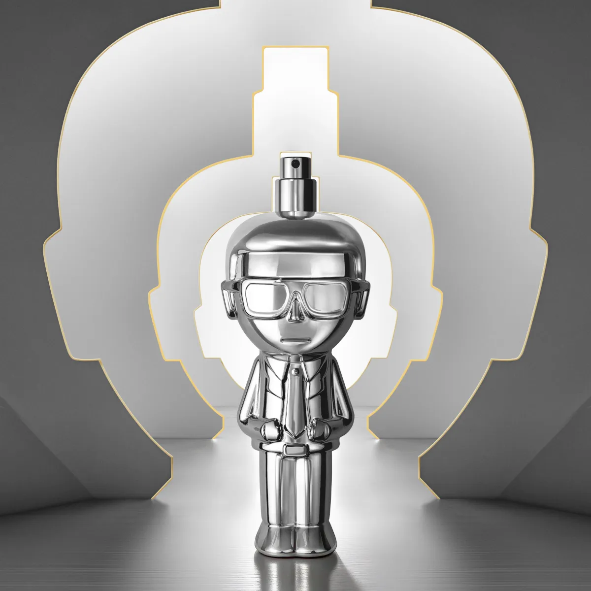 Elegantný chrómový flakón, evokujúci nezameniteľnú Lagerfeldovu siluetu, z neho robí skutočný zberateľský kúsok. Prekročte hranice obyčajnosti a buďte Ikonik.