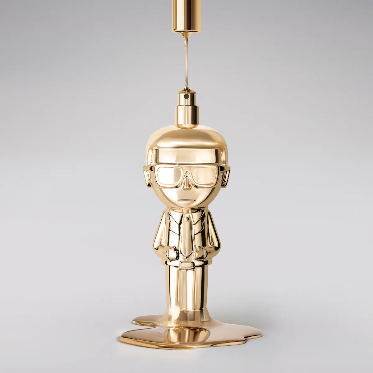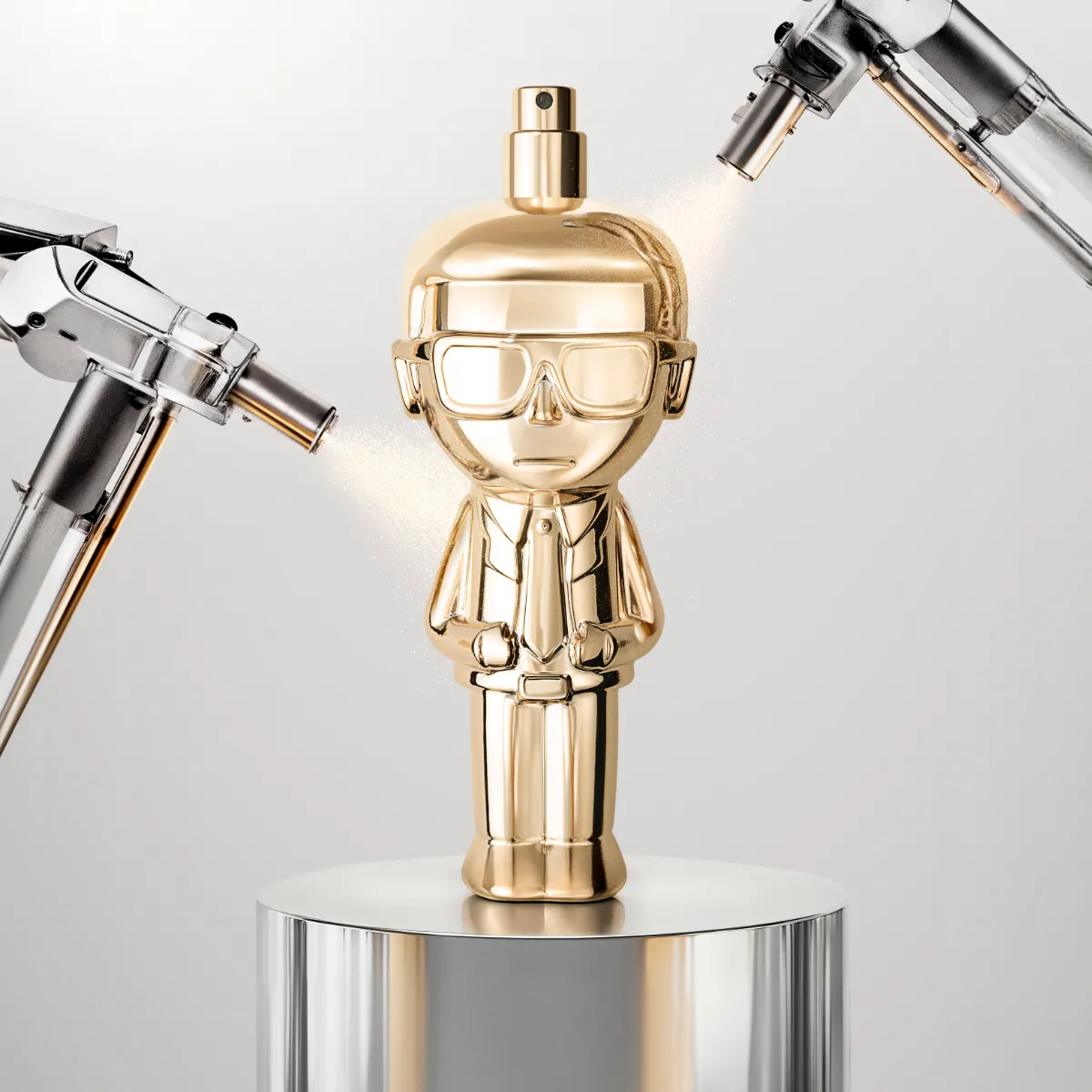 Elegantný kovový flakón v zlatom prevedení, evokujúci nezameniteľnú Lagerfeldovu siluetu, z neho robí skutočný zberateľský kúsok. Prekročte hranice obyčajnosti a buďte Ikonik.