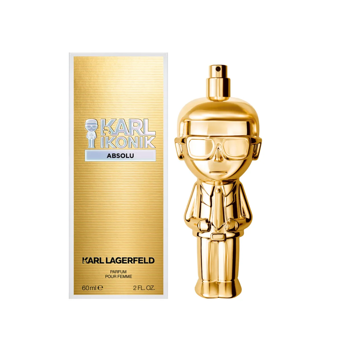 Elegantný kovový flakón v zlatom prevedení, evokujúci nezameniteľnú Lagerfeldovu siluetu, z neho robí skutočný zberateľský kúsok. Prekročte hranice obyčajnosti a buďte Ikonik.