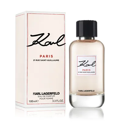Karl Paris 21 Rue Saint-Guillaume je inšpirovaná francúzskou oblasťou St. Germain, ktorá Karla uchvátila unikátnou atmosférou a spôsobom života. Rozhodol sa preto z tejto štvrti urobiť stred svojho módneho sveta a vybudovať na nej svoj ateliér.
