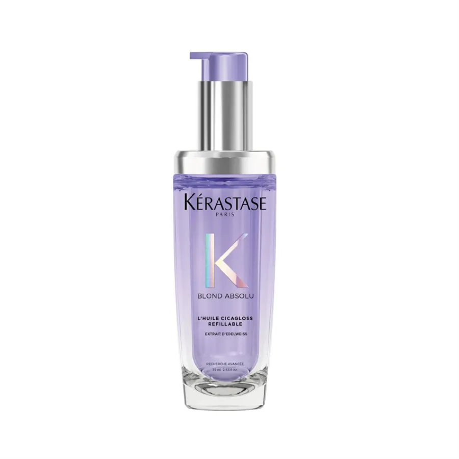 Doprajte unaveným blond vlasom novú dávku energie a intenzívnej hydratácie. Hydratačný olej Kérastase Blond Absolu L'Huile Cicagloss obnovuje zdravie vlasov a zlepšuje ich stav po zosvetľovaní či melírovaní. Jeho výťažok z plesnivca alpínskeho, horskej kvetiny známej svojou odolnosťou voči nízkym teplotám a vysokému UV žiareniu, je kľúčom k jeho účinnosti. Po každom použití budú vaše vlasy hebké, žiarivo lesklé a zdravšie na pohľad.