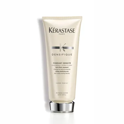 Kondicionér Fondant Densité Kérastase je určeý jemným a rednúcim vlasom. Prináša im novú textúru a hmotu. Spevňuje a posilňuje ich. Hydratuje a načechráva vlasové vlákno. Vaše vlasy budú plnšie, silnejšie a budú sa menej lámať.Kondicionér obsahuje látku Intra-cylane®: minerály, ktoré posilňujú štruktúru vlasov zvnútra. Kyselina hyaluronová vlasy do hĺbky hydratuje, vyživuje a podporuje regeneráciu vlasovej folikuly.Použitie: aplikujte na šampónom umyté a uterákom vysušené vlasy zo vzdialenosti 2-3 cm od korienkov a následne do dĺžok. Aplikácia na korienky by jemné vlasy zaťažila. Po 1 - 2 minútach pôsobenia riadne umyte. V prípade zasiahnutia očí ich okamžite rýchlo vypláchnite.Rada Kérastase Densifique zvyšuje hustotu a plnosť vlasov. Kérastase uviedol v roku 2016 dva programy Densifique určené rôznorodým potrebám mužov a žien. Oba programy obsahujú látku Stemoxydine® a nový komplex Glycan pre zvýšenie hustoty vlasov* a dosiahnutia vzhľadu silnejších vlasov.