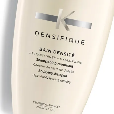 Vlasový šampon pro objem řídnoucích vlasů Bain Densité Kérastase Densifique pro vlasy postrádající hustotu má lehkou texturu. Účinně čistí, dodává hustotu, pevnost a bohatost bez zatížení. Hydratuje a zpevňuje, vyživuje a regeneruje folikuly. Váš účes tak získává pružnost a lehkost.Obsažená molekula Stemoxydine působí na kmenové buňky a aktivuje neaktivní vlasové váčky. Kyselina hyaluronová vlasy do hloubky hydratuje, vyživuje a podporuje regeneraci vlasové folikuly.Použití: aplikujte na navlhčené vlasy. Promasírujte a vytvořte pěnu. Následně důkladně opláchněte. V případě potřeby postup opakujte.Řada Kérastase Densifique zvyšuje hustotu a plnost vlasů. Kérastase uvedl v roce 2016 dva programy Densifique určené různorodým potřebám mužů a žen. Oba programy obsahují látku Stemoxydine® a nový komplex Glycan pro zvýšení hustoty vlasů* a dosažení vzhledu silnějších vlasů.* Klinické testy. 101 subjektů vs placebo. Denní aplikace po tři měsíce.Kérastase je inovativní vlasová kosmetika pro nejnáročnější zákazníky. Již od roku 1964 nabízí jedinečné profesionální produkty na míru všem typům vlasů. Mísí účinné aktivní látky na základě nejnovějších výzkumů. Díky úzké spolupráci s profesionálními kadeřníky vlasům opravdu rozumí.