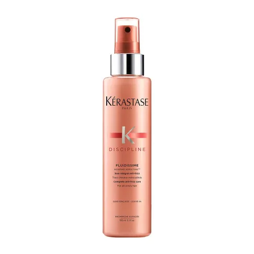 Bezoplachová záverečná starostlivosť Fluidissime Kérastase Discipline spoľahlivo ošetrí vlasy so sklonom ku krepateniu. Skrotí aj tie najkučeravejšie a najmenej zvládnuteľné vlasy. Dokonalo pripraví vlasy na ďalšiu úpravu a chráni ich pred vlhkosťou aj pred tepelnými prístrojmi, ako je fén, žehlička na vlasy alebo kulma. Dodáva lesk, perfektne ich uhladzuje a zaisťuje im prirodzenú pružnosť. Vyhladzuje vlasy, do hĺbky hydratuje a znižuje trenie vlasového vlákna, a tým aj jeho trepenie a krepatenie.