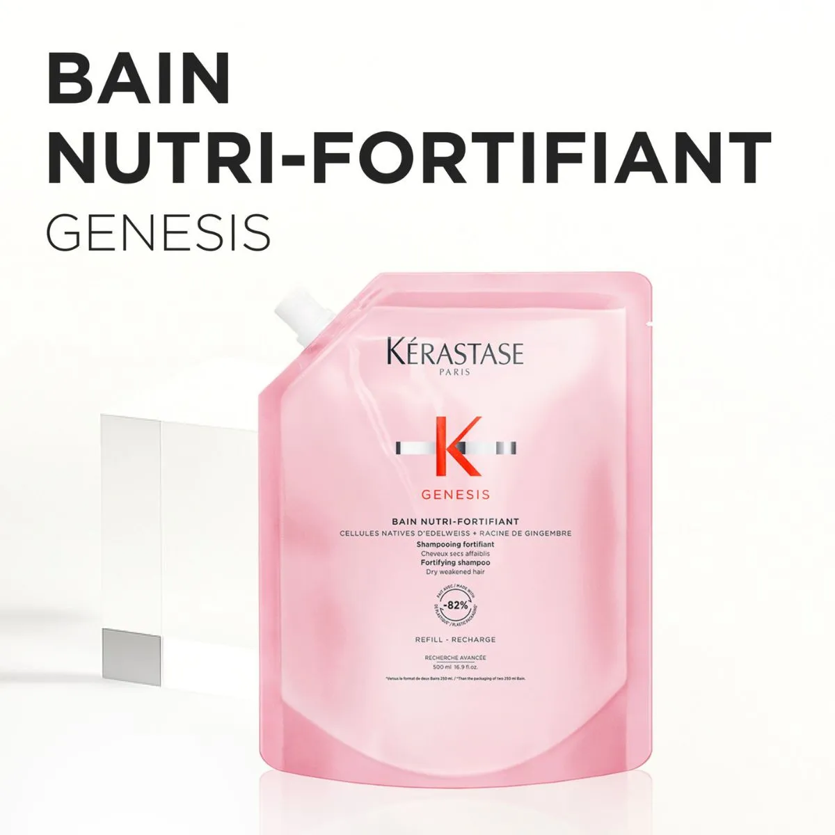 Šampón je vhodný pre suché, oslabené a riednuce vlasy.Obsahuje koreň zázvora a nativné bunky z plesnivca.Šetrne čistí vlasovú pokožku a vlasy. Predchádza vypadávaniu vlasov a prináša intenzívnu výživu. Vlasové vlákno je posilnené od korienkov, viac odolné a pevné. Rozčesávanie je jednoduché a šetrné.Použitie: aplikujte do mokrých vlasov, jemne masírujte a emulgujte. Potom opláchnite.Rada Genesis je vhodná pre oslabené vlasy so sklonom k vypadávaniu. Posilňuje krehké a riednuce vlasy, dodáva výživu a pevnosť.Kérastase je inovatívna vlasová kozmetika pre najnáročnejších zákazníkov. Už od roku 1964 ponúka jedinečné profesionálne produkty na mieru pre všetky typy vlasov. Kombinuje účinné aktívne látky na základe najnovších výskumov. Vďaka úzkej spolupráci s profesionálnymi kaderníkmi vlasom naozaj rozumie.