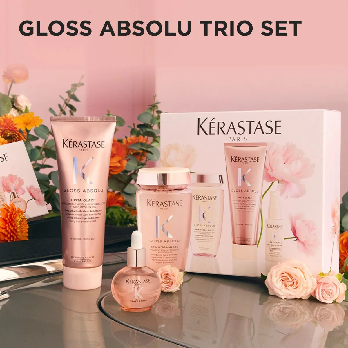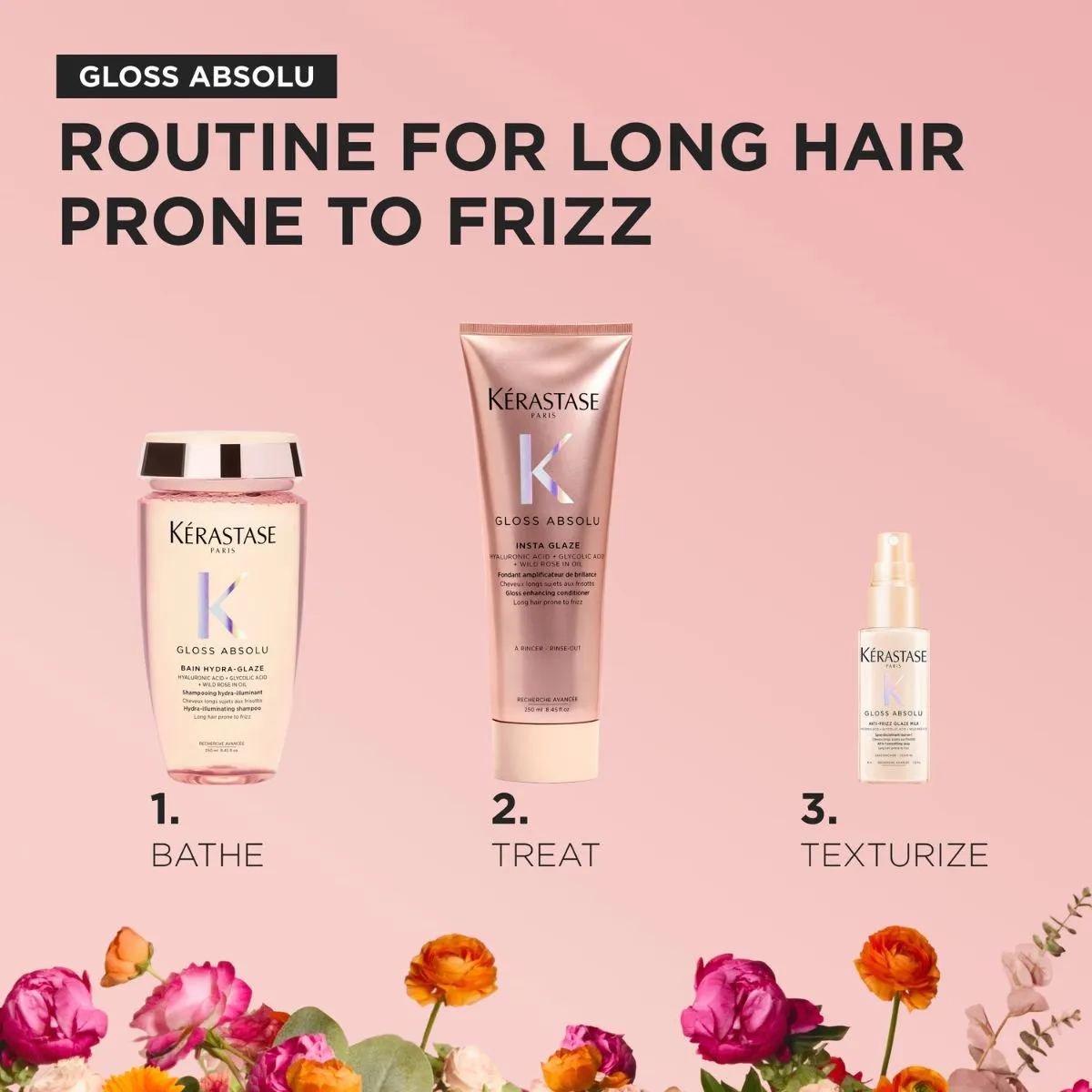 Rad Kérastase Gloss Absolu je určený pre dlhé vlasy so sklonom ku krepovateniu. Vďaka obsahu kyseliny hyalurónovej, kyseliny glykolovej a oleja z divokej ruže poskytuje vlasom hydratáciu, lesk a pružnosť bez zaťaženia. Pomáha bojovať proti krepovateniu a dodáva vlasom hladký a žiarivý vzhľad.
