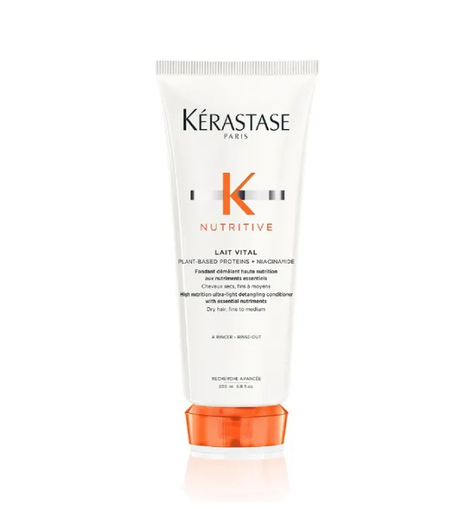 Účinné zložky prenikajú hlboko do vlasov, hydratujú a uzatvárajú kutikuly. Lait Vital má bielu krémovo-gélovú textúru a patrí medzi najlepšiu bezoplachovú starostlivosť pre suché vlasy.