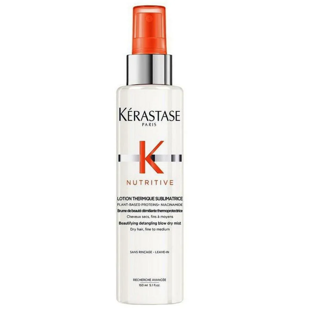 Trápia vás suché vlasy, ale nechcete sa vzdať úpravy vlasov pomocou žehličky? Ochranný sprej Kérastase Nutritive Lotion Thermique Sublimatrice poskytuje vlasom intenzívnu hydratáciu a výživu, pričom ich chráni pred teplotami až do 230 °C. Zároveň vyhladzuje vlasové vlákna, redukuje krepovatenie a uľahčuje ich úpravu.
