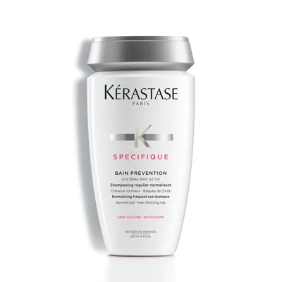 Šampón proti vypadávaniu vlasov Bain Prevention Kérastase Spécifique je prevenciou straty vlasov. Podporuje rast vlasových vlákien, zosilňuje ich a prináša váčší objem na počkanie. Neobsahuje silikóny.Šampon proti padaniu vlasov obsahuje systém Pro-Actif, ktorý je kombináciou troch aktívnych látok: antibakteriálne činidlo potláča podráždenie, skľudňujúce činidlo ukľudňuje a regeneruje pokožku hlavy a regulačný agent stimuluje mikrocirkuláciu.Použitie: aplikujte do vlhkých vlasov a masírujte aby ste podporili mikrocirkuláciu.Rada Kérastase Spécifique je určená na špecifické problémy pokožky hlavy a vlasov, akými sú citlivosť, suchá a svrbivá pokožka hlavy, lupiny, padajúce vlasy alebo mastné korienky. Produkty Spécifique jej vrátia pôvodnú vyváženosť a vlasom zdravý a krásny vzhľad.Kérastase je inovatívna vlasová kozmetika pre najnáročnejších zákazníkov. Už od roku 1964 ponúka jedinečné profesionálne produkty na mieru všetkým typom vlasov. Mieša účinné aktívne látky na základe najnovších výskumov. Vďaka úzkej spolupráci s profesionálnymi kaderníkmi vlasom skutočne rozumie.