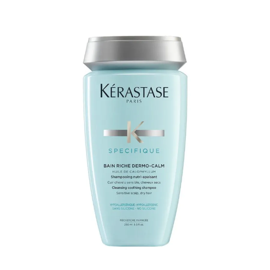 Bohatý zklidňující šampon pro citlivou pokožku hlavy Bain Riche Dermo-calm Kérastase Specifique je ideální pro suché vlasy.Čistí a pečuje o citlivou pokožku hlavy a vyživuje vlasy. Vaše vlasy získají zpět svoji jemnost a zmírní se nepříjemné pocity svědění a pálení. Šampon je hypoalergenní a testovaný pod dermatologickým dohledem. Neobsahuje silikony.Zklidňující šamponová lázeň obsahuje kalabový olej, který zklidňuje podráždění. Piroctone Olamine působí preventivně proti svědění. Glycerol zvolňuje a zjemňuje pokožku hlavy. Derivát mentolu jemně osvěžuje.Použití: aplikujte na vlhké vlasy, napěňte a masáží aktivujte mikrocirkulaci. Opláchntěte.Řada Kérastase Spécifique je určena na specifické problémy pokožky hlavy a vlasů jako jsou citlivost, suchá a svědivá pokožka hlavy, lupy, padající vlasy nebo mastné kořínky. Produkty Spécifique jí navrátí zpět původní vyváženost a vlasům zdravý a krásný vzhled.Kérastase je inovativní vlasová kosmetika pro nejnáročnější zákazníky. Již od roku 1964 nabízí jedinečné profesionální produkty na míru všem typům vlasů. Mísí účinné aktivní látky na základě nejnovějších výzkumů. Díky úzké spolupráci s profesionálními kadeřníky vlasům opravdu rozumí.