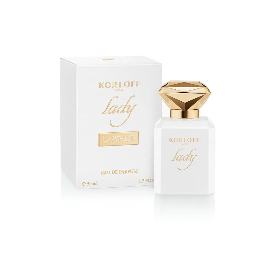 Vôňa Lady In White je pokračovaním bestselleru Lady Korloff v podmanivom púdrovom zložení. Je ódou na mladosť, naplnená ľahkosťou a falošnou dômyselnou čistotou.