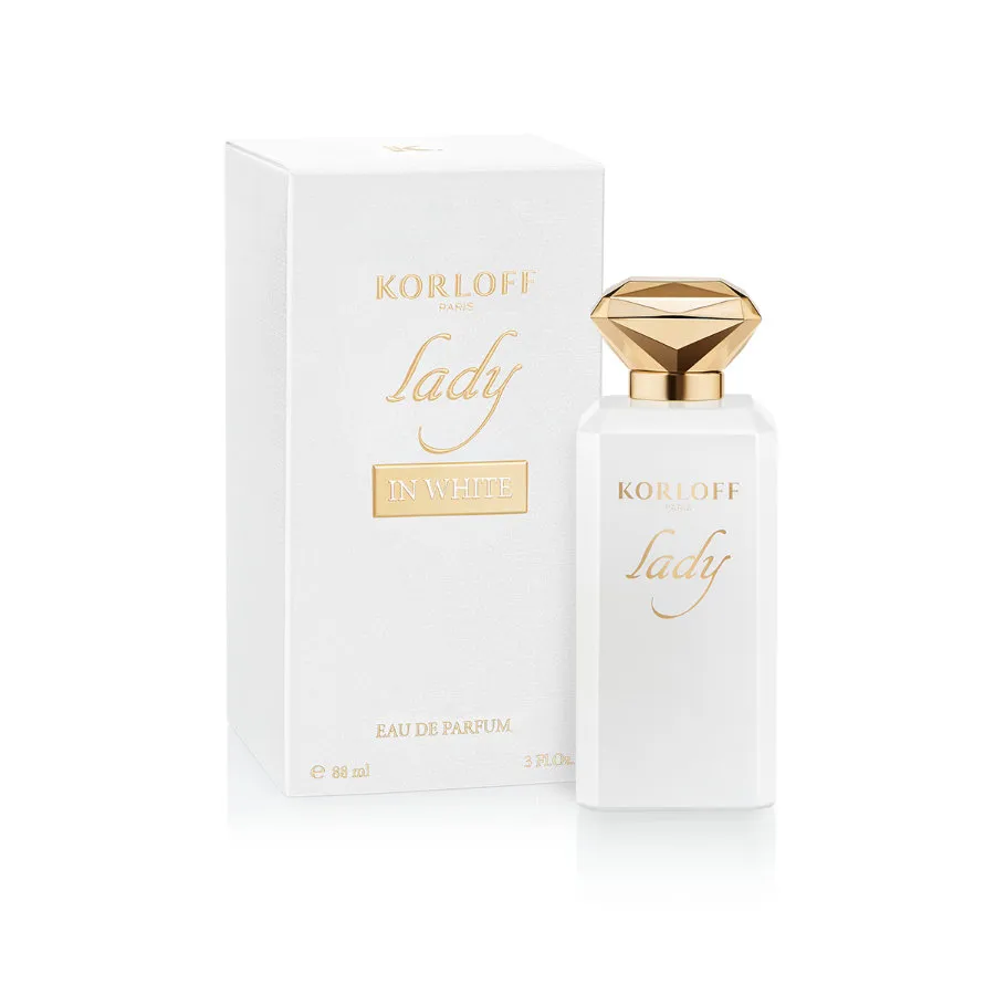 Vôňa Lady In White je pokračovaním bestselleru Lady Korloff v podmanivom púdrovom zložení. Je ódou na mladosť, naplnená ľahkosťou a falošnou dômyselnou čistotou.