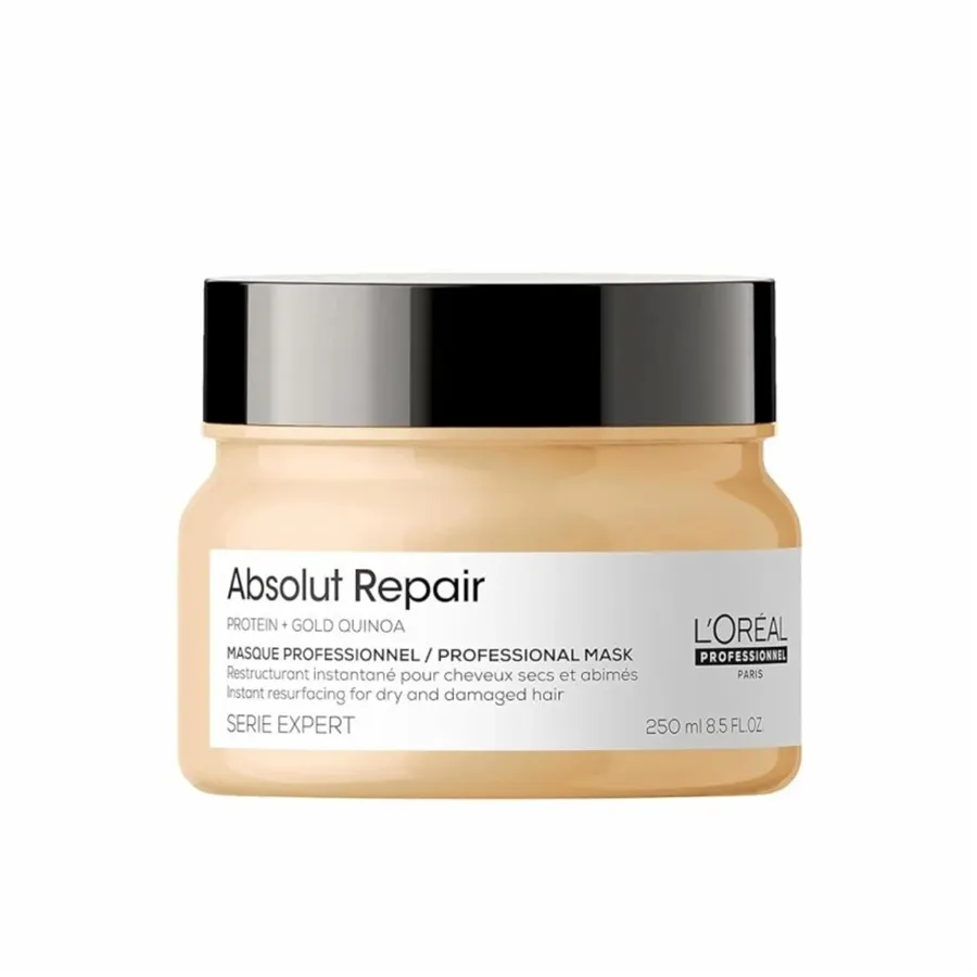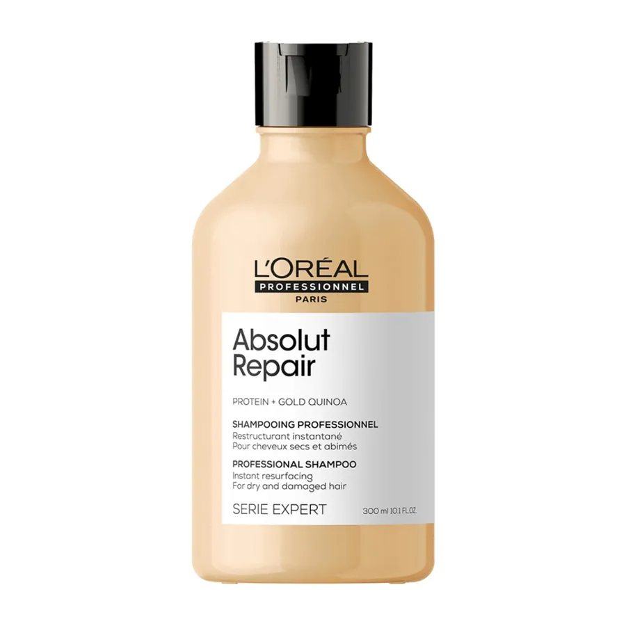 Šampón L'Oréal Professionnel Absolut Repair je ideálnou starostlivosťou pre suché a poškodené vlasy namáhané chemickými úpravami. Jemne čistí, zanecháva vlasy hebké, ľahké a lesklé. Viditeľne regeneruje poškodený povrch vlasov, posilňuje ich a uľahčuje úpravu. Vytvára ochranný film, ktorý chráni pred ďalším poškodením. Obsahuje pšeničné proteíny a extrakt zo zlatej quinoy, ktoré vlasom dodávajú výživu a vitalitu.