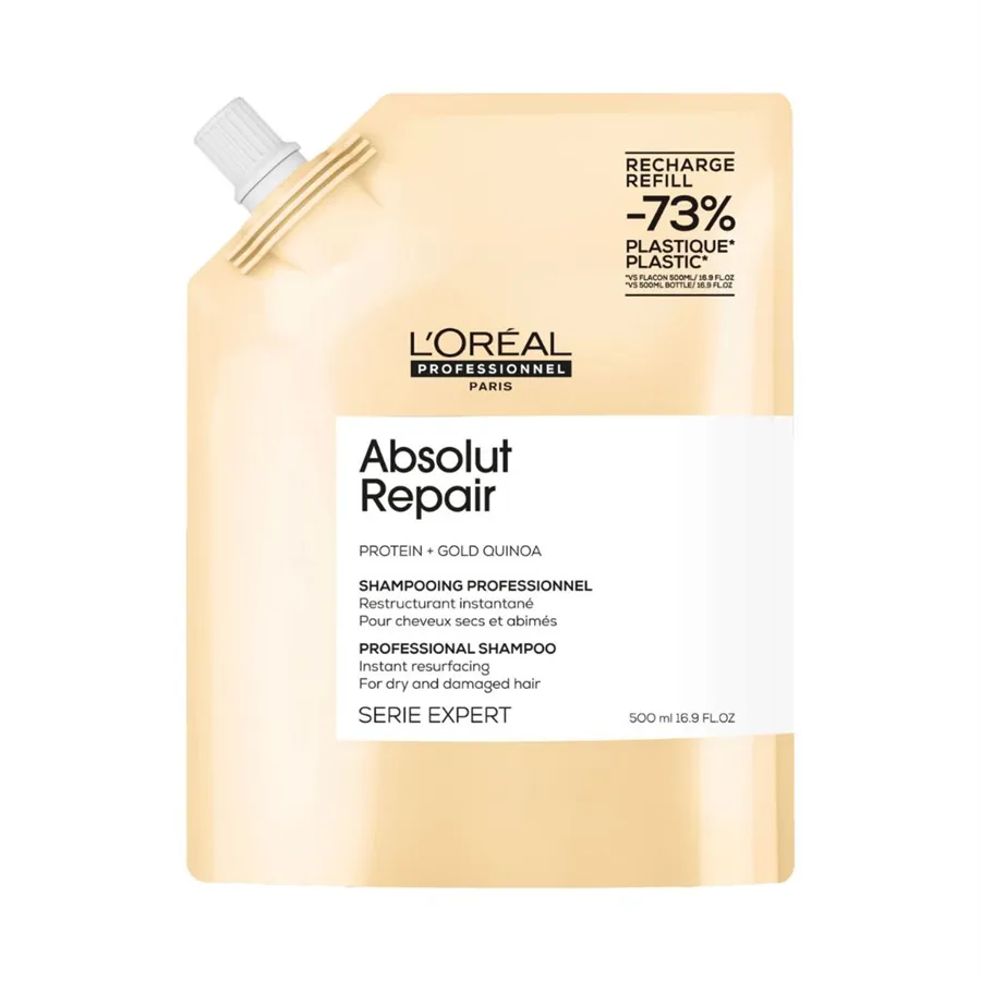 Šampón L'Oréal Professionnel Absolut Repair je ideálnou starostlivosťou pre suché a poškodené vlasy, ako aj vlasy namáhané chemickými úpravami. Jemne čistí, zanecháva vlasy hebké, ľahké a žiarivé. Viditeľne regeneruje poškodený povrch vlasov, posilňuje ich a uľahčuje úpravu. Vytvára ochranný film, ktorý chráni pred ďalším poškodením.