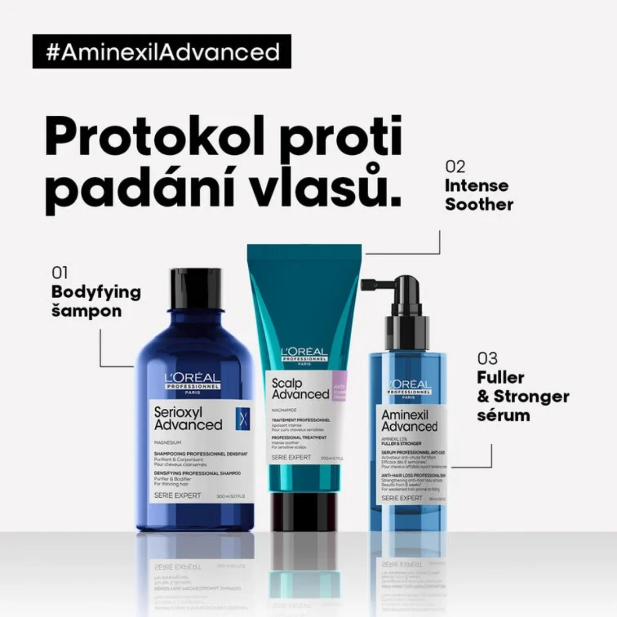Toto ľahké sérum s obsahom 1,5 % Aminexilu je navrhnuté pre vlasy so sklonom k vypadávaniu. Pôsobí priamo na pokožku hlavy, kde pomáha redukovať vypadávanie a zároveň posilňuje vlasové vlákna, vďaka čomu vlasy pôsobia plnšie a zdravšie. Jeho svieža vôňa navodzuje pocit čistoty a profesionálnej starostlivosti, zatiaľ čo jemná textúra nezaťažuje vlasy. Použitie: Aplikujte večer na uterákom vysušené vlasy. Rozdeľte ich do štyroch sekcií a na každú aplikujte päť stlačení séra. Vmasírujte končekmi prstov do pokožky hlavy a neoplachujte. L'Oréal Professionnel je svetová jednotka v oblasti vlasovej kozmetiky, ktorá vďaka spojeniu špičkovej vedy a dlhoročných skúseností prináša kaderníkom aj vám tú najlepšiu starostlivosť. Pretože vy za to stojíte.