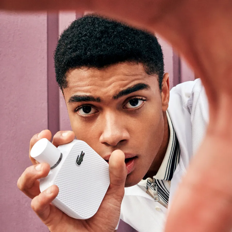 Flakon a krabička majú ikonický vzor „petit piqué“, ktorý pripomína látku polokošiel. Každý flakon je zdobený autentickou výšivkou krokodíla Lacoste, rovnako ako tomu je na polokošeliach.