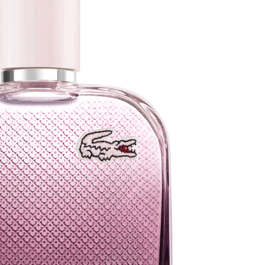 Flakon a krabička mají ikonický vzor „petit piqué“, který připomíná látku polokošil. Každý flakon je zdoben autentickou výšivkou krokodýla Lacoste, stejně jako tomu je na polokošilích.