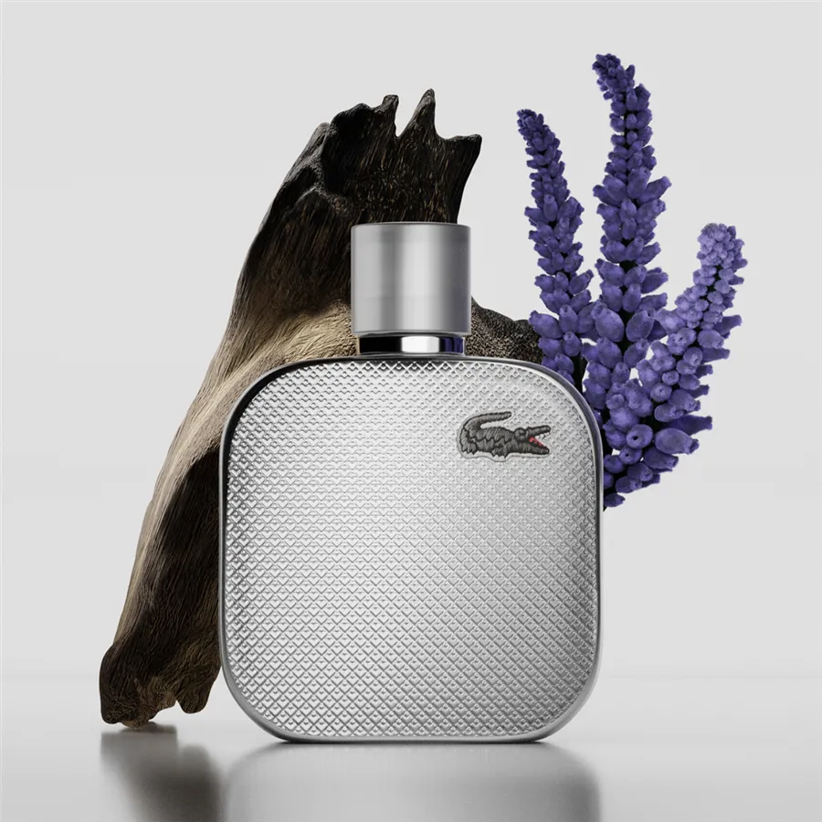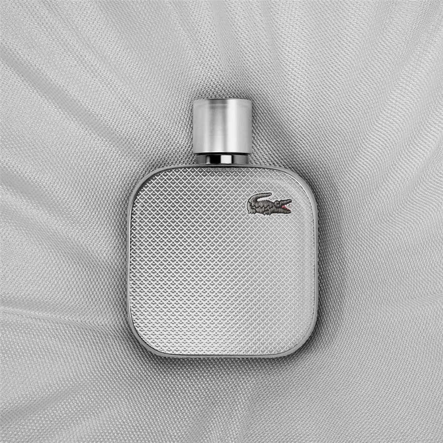 So svojim strieborným kovovým povrchom, vzdávajúcim hold oceľovej tenisovej rakete, ktorú vynašiel René Lacoste, L.12.12 Silver Grey elegantne a žiarivo dopĺňa ikonickú kolekciu vôní inšpirovaných polokošeľou.