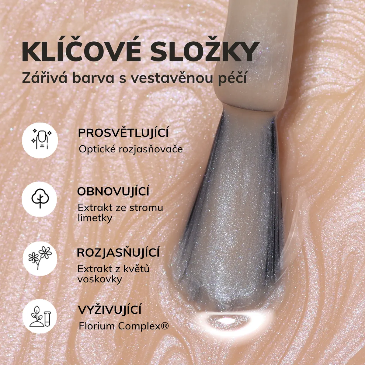 Rozjasňovače nechtov okamžite zakrývajú farebné nodokonalosti nechtov a rozjasňujú. Filtrujú UV žiarenie a dodávajú antioxidanty. Tým chránia pred ďalším žltnutím a postupne čím ďalej viac rozjasňujú. Hydratujú, vyživujú a upokojujú. Ich univerzálny odtieň skrášľuje každý odtieň pokožky. Dodáva nechtom prirodzený, zdravý a žiarivý vzhľad.