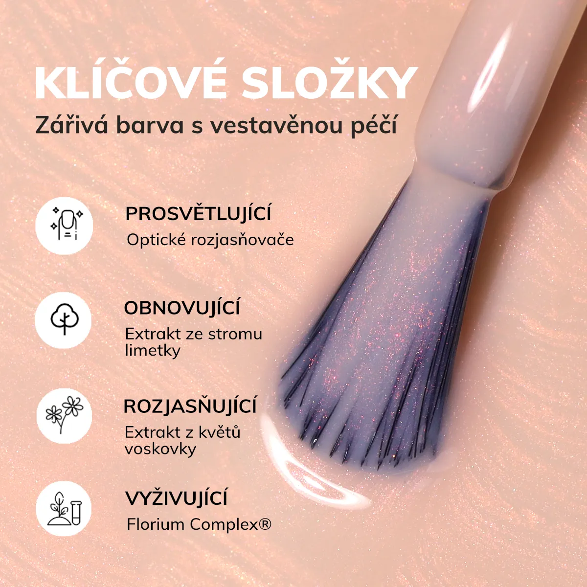 Rozjasňovače nechtov okamžite zakrývajú farebné nodokonalosti nechtov a rozjasňujú. Filtrujú UV žiarenie a dodávajú antioxidanty. Tým chránia pred ďalším žltnutím a postupne čím ďalej viac rozjasňujú. Hydratujú, vyživujú a upokojujú. Ich univerzálny odtieň skrášľuje každý odtieň pokožky. Dodáva nechtom prirodzený, zdravý a žiarivý vzhľad.
