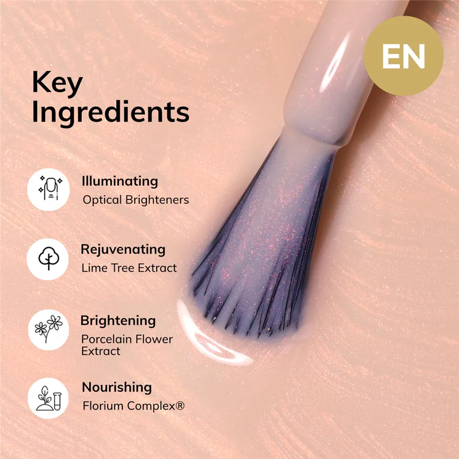 Rozjasňovač obsahuje optické rozjasňovače a extrakt z lipy, ktorý hydratuje, pôsobí antioxidačne, vyživuje a rozjasňuje. Extrakt z voskových kvetov Hoya Lacunosa prináša diamantové odlesky a upokojenie. Obsahuje patentovaný Florium Complex® pre výživu.