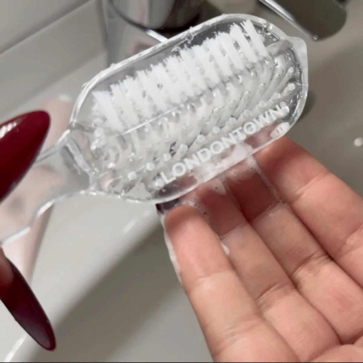 LONDONTOWN kur Mani Bright Nail Scrub Peeling na nechty s kefkou