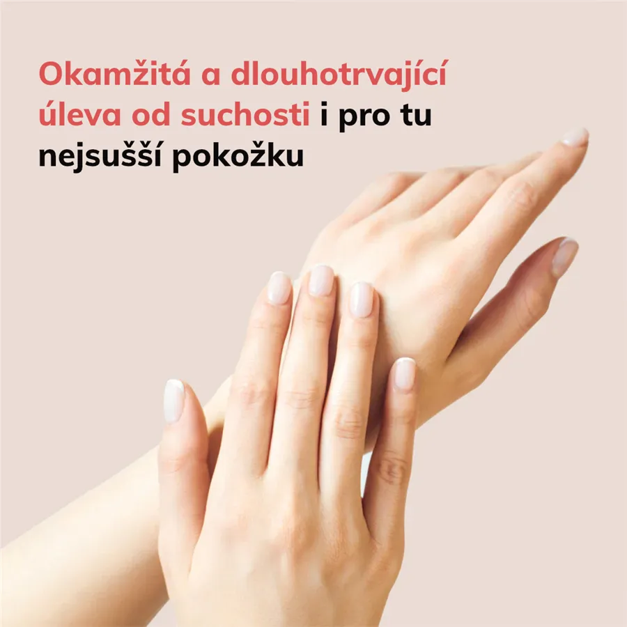 - Upokojuje suchú pokožku rúk pre okamžitú úľavu a dlhodobé transformačné výsledky