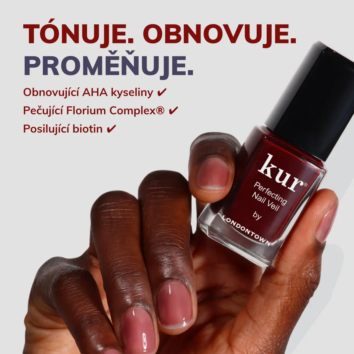 Tónovaný hydratačný a spevňujúci lak Nail Veil prináša najjednoduchšiu manikúru, akú si viete predstaviť. Je to výživný závoj. Má všetky úžasné vlastnosti starostlivosti Kur vrátane výživného Florium Complex®. Neutrálne odtiene zdokonaľujúcich závojov sú veľmi elegantné a univerzálne. Londontown v nich ubral pigment, aby zvýšil pestiace účinky. Ultra-jemné odtiene okamžite zdokonaľujú a vylepšujú prirodzený vzhľad nechtov, zatiaľ čo zmes aktívnych látok ich posilňuje a hydratuje. Stačí naniesť jednu až dve vrstvy, nechať zaschnúť a vyraziť von. Nepotrebujete žiadny podkladový ani vrchny lak (ale môžete ich použiť). Až svoj Perfecting Nail Veil odstránite, nechty budú vyzerať omladenejšie a zdravšie než predtým.